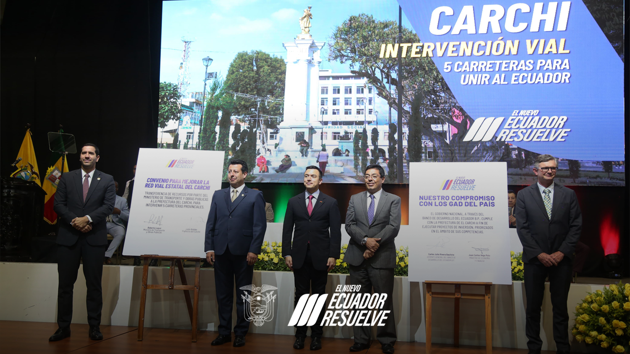 Adicionalmente, en este acto, el Ministerio de Transporte y Obras Públicas, y el Gobierno Autónomo Descentralizado del Carchi suscribieron un convenio especifico de transferencia de fondos, de USD 7,7 millones para intervenir cinco tramos viales: El Sixal – Miraflores; García Moreno – Tinajillas: Gruta de Fátima – Casa Grande, La Loma – Santa Lucía y Timbutay -Julio Andrade.