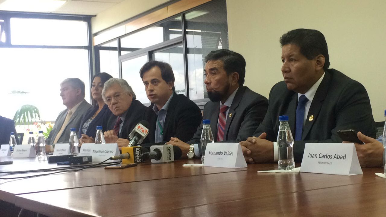 Alvaro Guzmán, subsecretario de Transporte Terrestre y Ferroviario y representantes de los gremios de transporte del país.