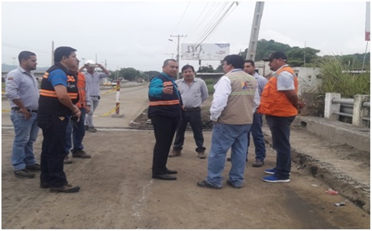 Diofre Alcívar, subsecretario del MTOP zona 4, junto al equipo técnico de la entidad, realizó un recorrido por el acceso a Bahía de Caráquez, para conocer el avance de los trabajos.