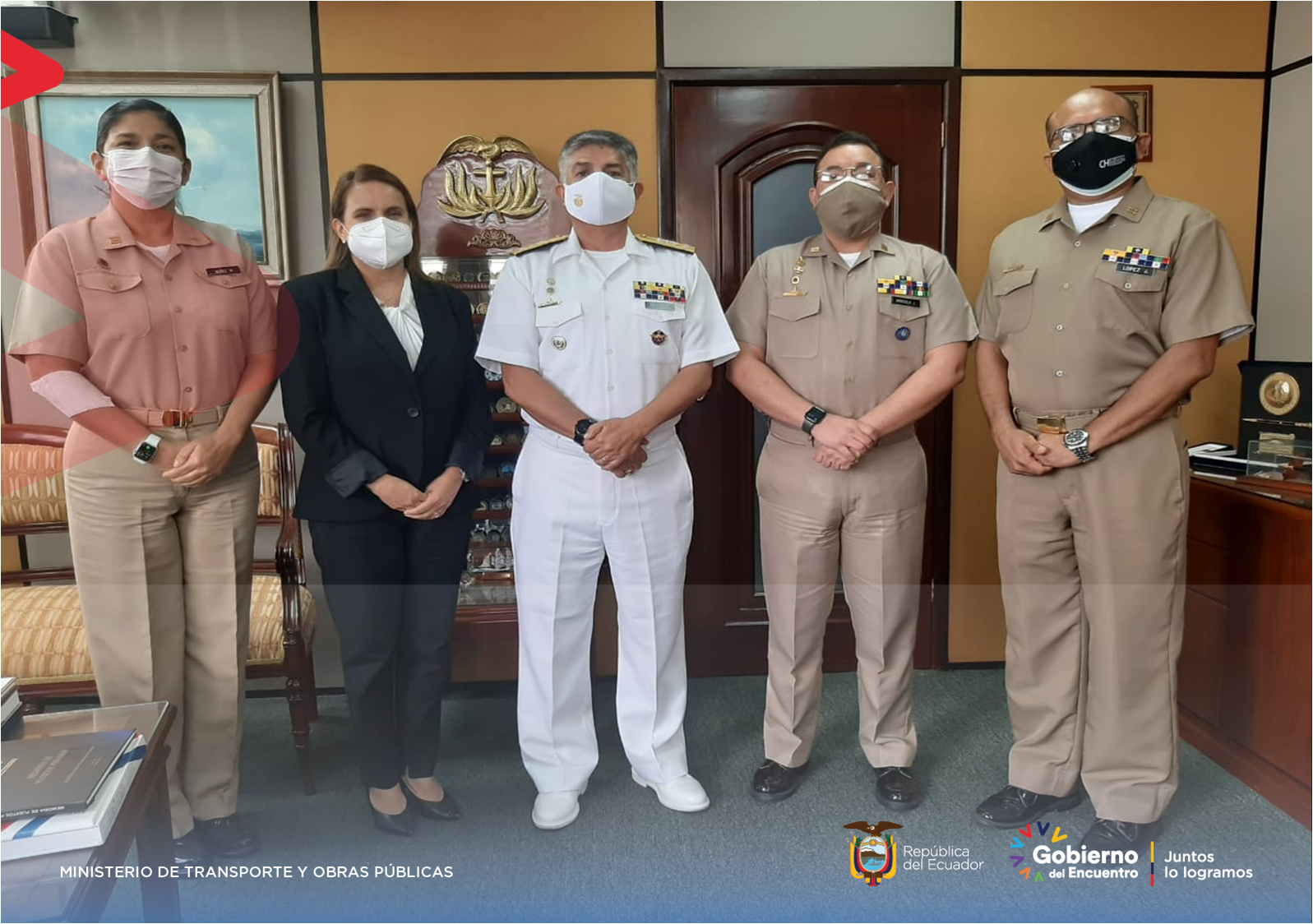 Con el objetivo de articular acciones interinstitucionales que faciliten la aplicación de la Ley Orgánica de Navegación, Gestión de la Seguridad y Protección Marítima y Fluvial en los Espacios Acuáticos, aprobada por el Ejecutivo al inicio de la gestión del Gobierno del Encuentro, la subsecretaria de Puertos y Transporte Marítimo y Fluvial (SPTMF), Alexandra Villacís Parada y, el director Nacional de los Espacios Acuáticos (DIRNEA), Calm. Jaime Vela, mantuvieron una reunión para conformar el equipo técnico responsable.