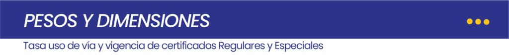 Las unidades de carga, remolque y semirremolques deberán cumplir con las dimensiones y pesos permitidos establecidos en la Tabla Nacional de Pesos y dimensiones, sus propietarios podrán obtendrán del Ministerio de Infraestructura y Transporte los correspondientes certificados de operación regular o especial, en los que constatarán las especificaciones técnicas, pesos y dimensiones máximos permitidos, además de los datos que sean requeridos por la entidad.