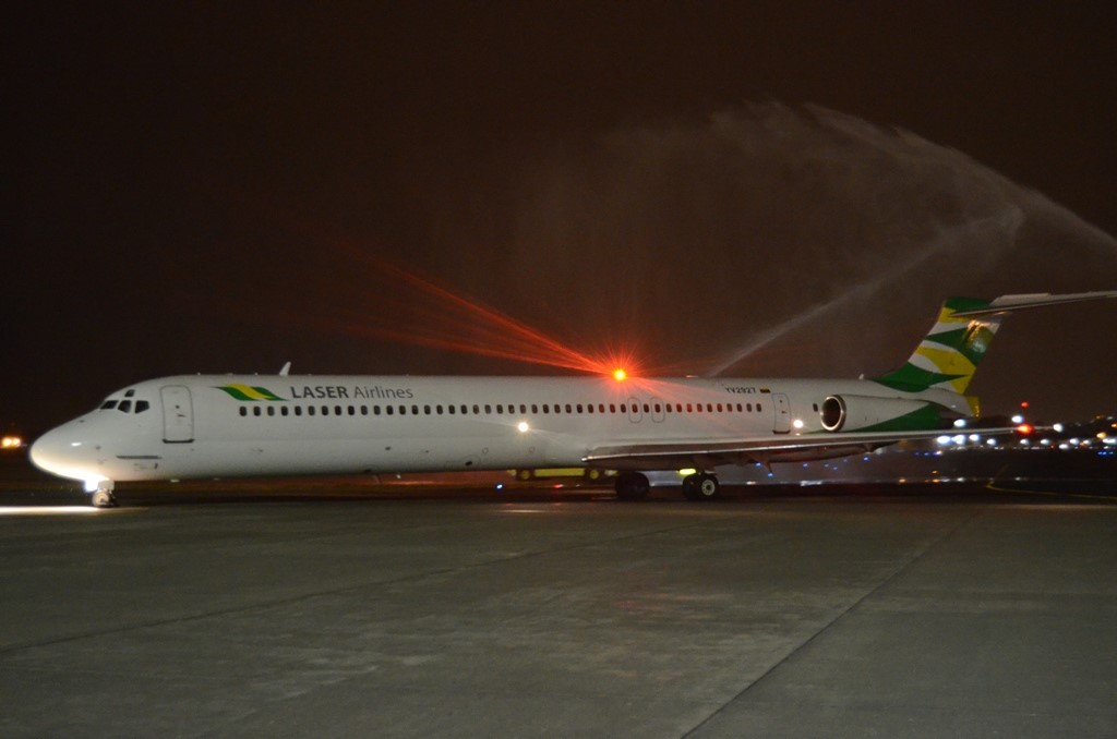 Para el vuelo inaugural en la ruta Caracas – Guayaquil, la compañía Laser dispuso una aeronave McDonnell Douglas MD-83 con capacidad para 163 pasajeros. A su llegada a Guayaquil, los bomberos del aeropuerto José Joaquín de Olmedo realizaron la tradicional bienvenida de arco de agua a la aeronave.