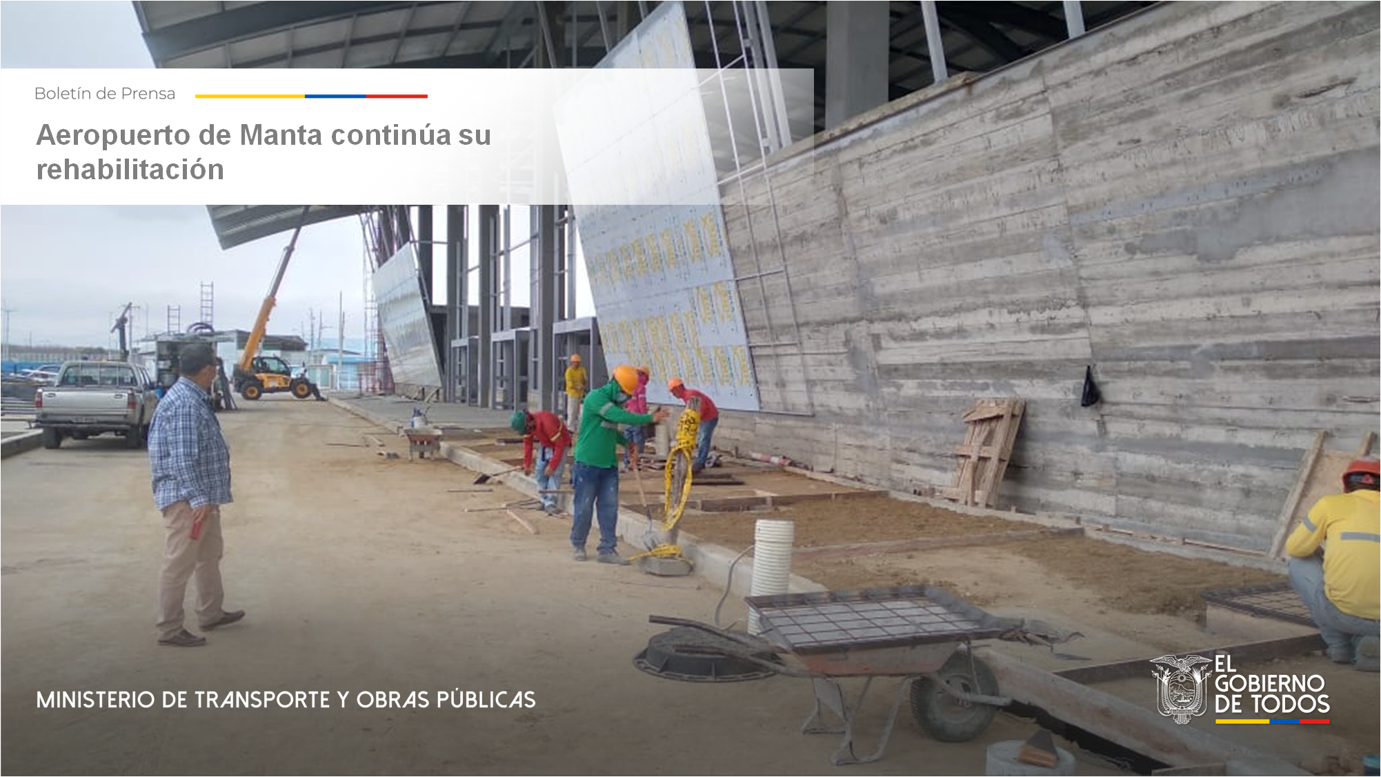 El Ministerio de Transporte y Obras Públicas (MTOP) continúa la rehabilitación del aeropuerto de Manta, obra que contribuirá al desarrollo aeronáutico del país e impulsará el turismo en la provincia.