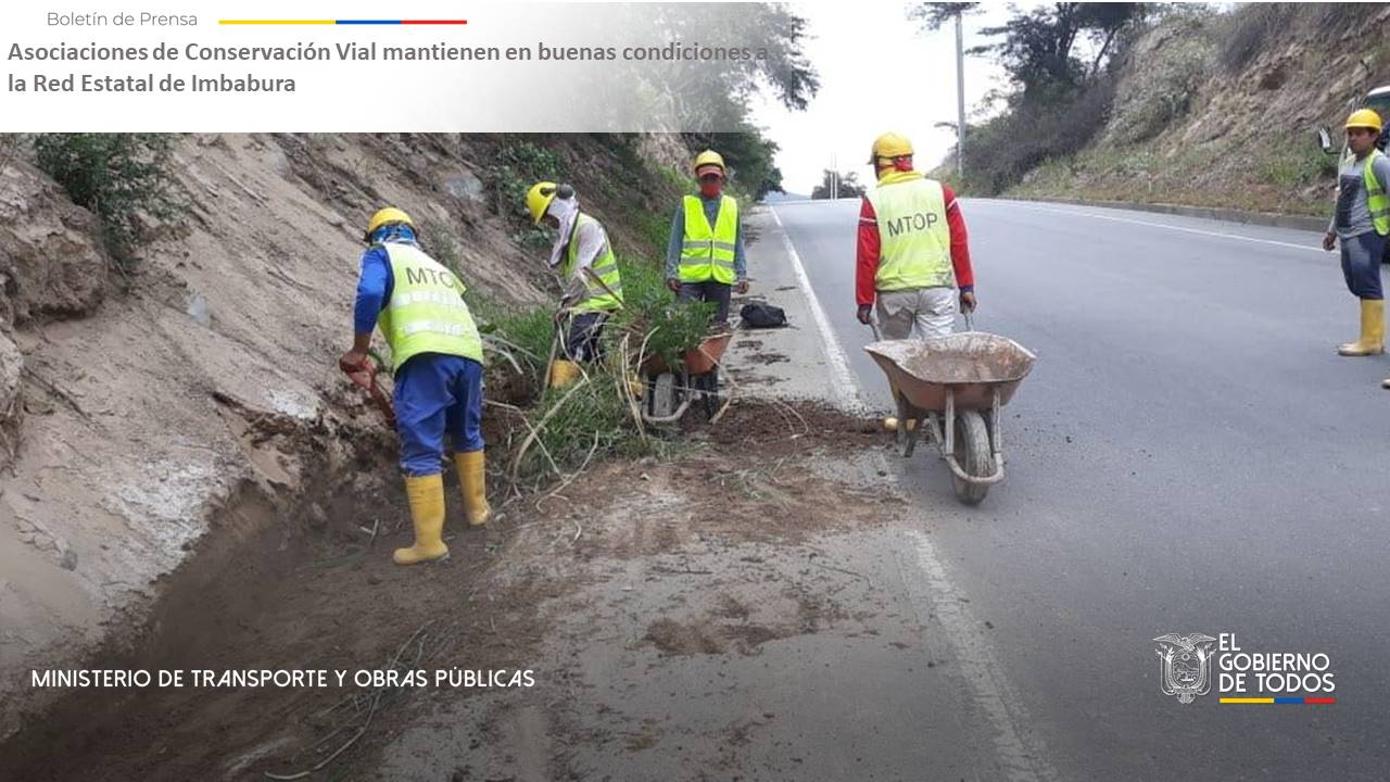 El Ministerio de Transporte y Obras Públicas, a través de la Dirección Distrital de Imbabura, trabajan en conjunto con las Asociaciones de Conservación Vial, en el mantenimiento rutinario, de las vías aportando al desarrollo social yEl Ministerio de Transporte y Obras Públicas, a través de la Dirección Distrital de Imbabura, trabajan en conjunto con las Asociaciones de Conservación Vial, en el mantenimiento rutinario, de las vías aportando al desarrollo social y económico de los habitantes.