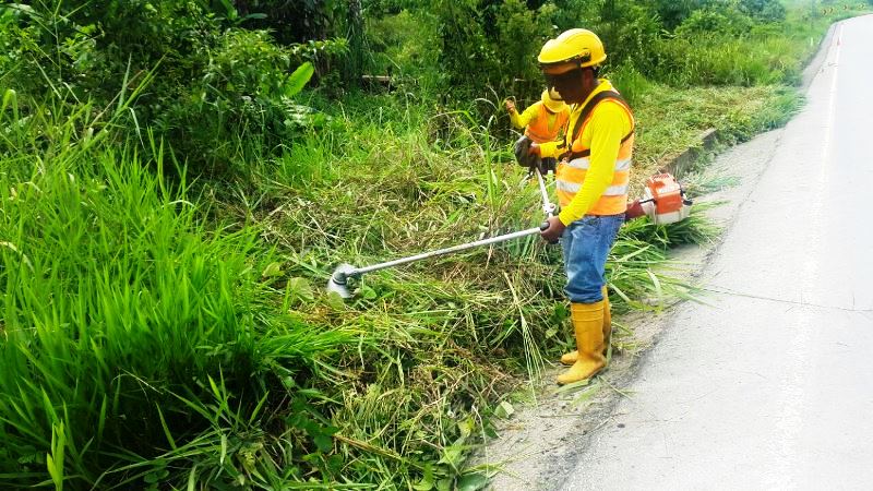 Permanentemente, a lo largo de la vía, las microempresas realizan trabajos de roza a mano, reposición de tachas, limpieza de cunetas, alcantarillas y limpieza de señalización horizontal y vertical por lo que se solicita transitar con precaución por las diferentes rutas de la provincia respetando la velocidad permitida.
