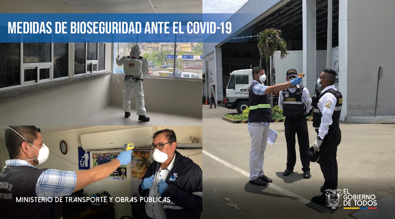 Reiteramos que los servicios portuarios se mantienen operativos. El personal que labora en el Puerto de Manta, así como en cada operadora de buques y en el Terminal Pesquero y de Cabotaje cumple obligatoriamente con las medidas de bioseguridad, utilizando mascarillas, guantes y gel antibacterial permanentemente.