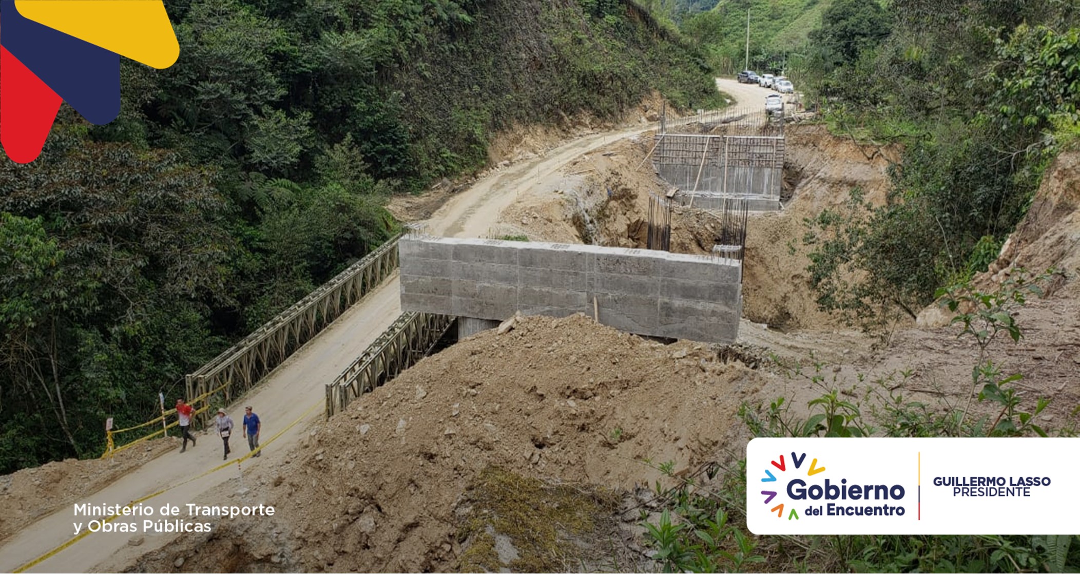 Palanda, Zamora Chinchipe. La construcción de cuatro puentes: Quebrada Honda, Palanda, Agua Dulce y Palanumá, en el tramo I del Cuarto Eje Vial (Vilcabamba-Palanda-Bellavista) registra un avance físico del 54%. El Subsecretario Zonal 7 del Ministerio de Transporte y Obras Públicas (MTOP), Esner Bustamante Rivera, constató la ejecución de los trabajos.