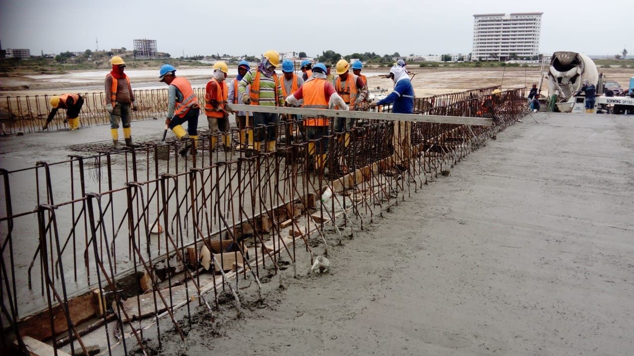 Colocación de hormigón en los 100 metros del intercambiador de San Pablo, provincia de Santa Elena.