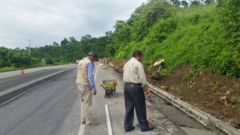 Se llevan a cabo labores de revestimiento de hormigón en bordillo, cunetas, parterres y canales, en el tramo La Pila – Jipijapa y Jipijapa – La Cadena. También se realiza bacheo asfáltico, y se tiende una capa de rodadura de hormigón asfáltico, en el sector comprendido entre Jipijapa y La Cadena.