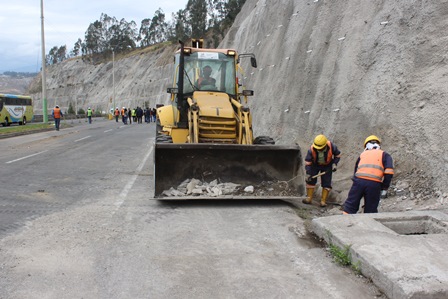 El Ministerio de Transporte y Obras Públicas a través de la subsecretaría regional 3 avanza en los trabajos de estabilización de taludes del paso lateral Ambato, obra que tiene un avance físico del 90%.