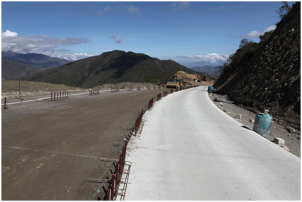 La obra presenta excelentes características geométricas y se desarrolla en terreno montañoso ondulado, el ancho promedio de la calzada a nivel de capa de rodadura es de 9,20 metros en pavimento rígido, características que permite que el tráfico de vehículos pesados y livianos se desarrolle en buenas condiciones de transitabilidad.