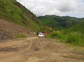 Maquinaria del Cuerpo de Ingenieros del Ejército (CEE), compañía encargada de la reconstrucción de esta arteria vial, continúa las labores de limpieza de material pétreo.