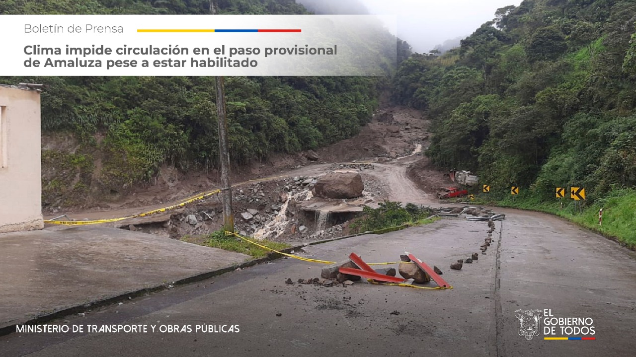 Clima impide circulación en el paso provisional de Amaluza habilitado para hoy por el MTOP