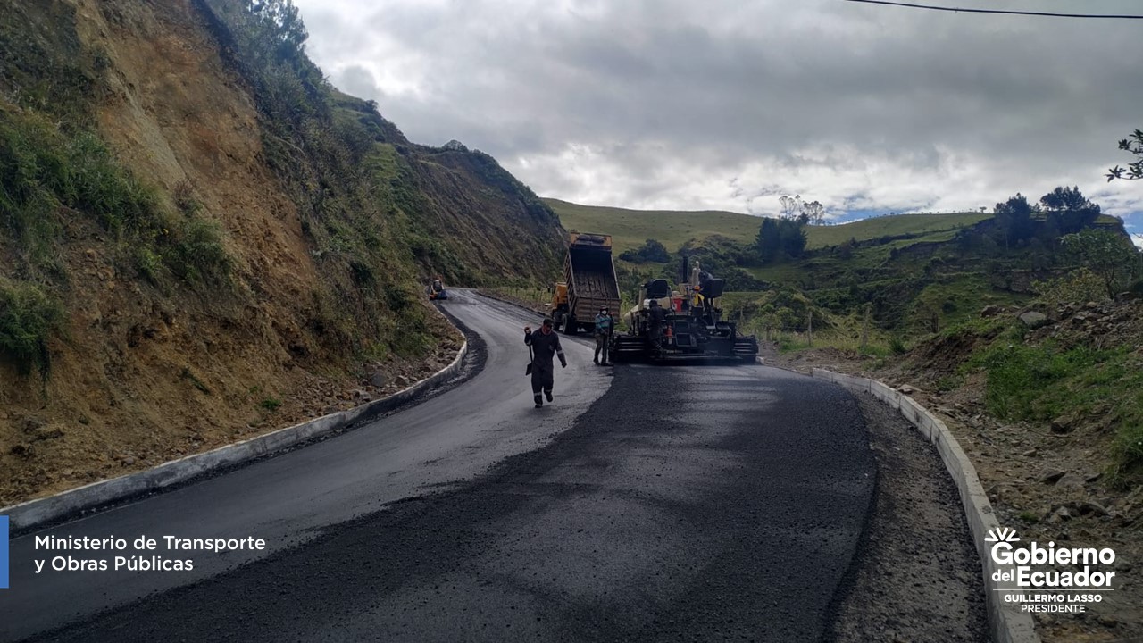 Cotopaxi. Mediante convenio de cooperación interinstitucional entre el Ministerio de Transporte y Obras Públicas (MTOP) y el Gobierno Autónomo Descentralizado (GAD) Municipal de Sigchos avanza el asfalto de la Primera Etapa de la vía Sigchos – Las Pampas (Sigchos hasta el sector La «Y» de La Cantera) de 8 km de longitud, en la provincia de Cotopaxi.