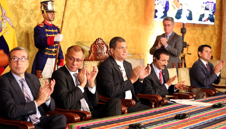 El acto se cumplió al medio día en el Salón Amarillo del Palacio de Carondelet con la presencia del Primer Mandatario, Eco. Rafael Correa Delgado; el vicepresidente de la República, Ing. Jorge Glas Espinel; H.E. Sultan Ahmed Bin Sulayem, presidente de DP World, el ministro Coordinador de la Producción, Empleo y Competitividad, Dr. Vinicio Alvarado Espinel, el ministro de Transporte y Obras Públicas, Ing. Walter Solís Valarezo, Isabel Noboa Pontón, presidenta del Grupo Nobis y más autoridades y representantes de varias empresas privadas del sector productivo.