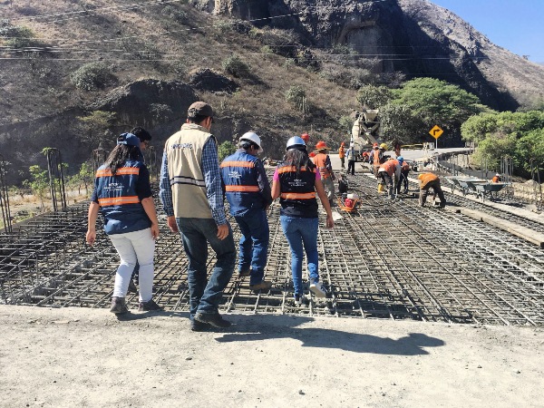 La Ing. Natalia Peña, directora distrital del MTOP, visitó la obra donde constató los trabajos realizados, informó que, “Se ha concluido el 100% de fundición de la losa en lo que corresponde a los trabajos estructurales del puente en el sector Indiucho, que enlaza a sectores agrícolas, ganaderos, turísticos y comerciales, beneficiando de manera directa a 98.000 ciudadanos, se espera en los próximos días, poder habilitar el puente para el servicio de la comunidad”.
