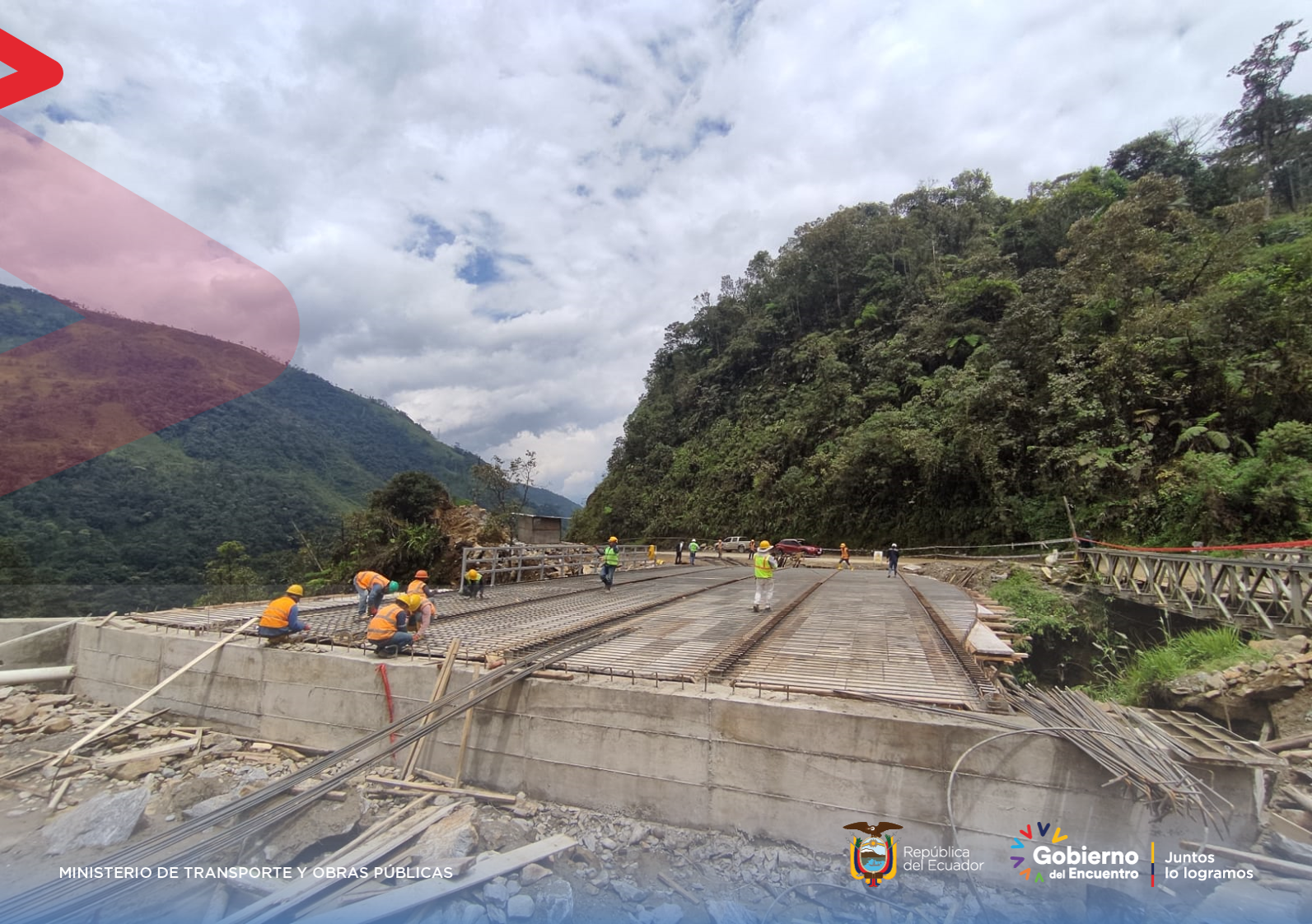 El Ministerio de Transporte y Obras Públicas (MTOP) informa que la construcción del puente definitivo sobre la quebrada El Destrozo, ubicado en el kilómetro 45 de la carretera Loja – Zamora, registra un avance del 50%. La inversión en el proyecto supera los USD 948.233, sin IVA.