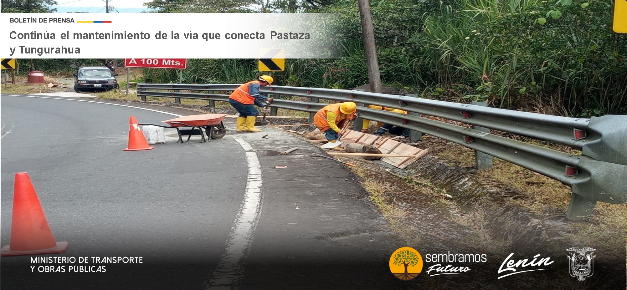Con el objetivo de mantener expedita la Red Vial Estatal de las provincias de Pastaza y Tungurahua, el Ministerio de Transporte y Obras Públicas (MTOP) inició el mantenimiento del corredor E30, tramo Puyo – límite con Tungurahua. Al momento se ejecuta tareas como la reparación del pavimento rígido, losas de hormigón y resaltos en el trayecto entre Shell y Mera, con una inversión de 143.104 dólares.