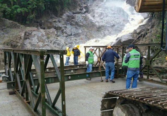“El MTOP ejecutó de manera inmediata trabajos de limpieza y desalojo de material de arrastre, producto de las lluvias, con técnicos y maquinaria especializada. El día de hoy se colocará el puente  para habilitar el tránsito en la vía Loja – Zamora”, afirmó Israel Villavicencio, subsecretario de la Zona 7.