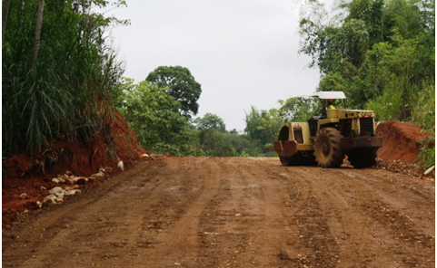 Al momento se coloca material de mejoramiento, cruce de alcantarillas metálicas y trituración de material petreo para posteriormente proceder a colocar base, y otros trabajos.