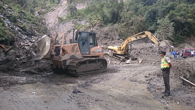 Al momento se ha desalojado aproximadamente 30m3 de material, producto del deslave ocurrido el pasado lunes 13 de junio. Los trabajos de limpieza y las labores de ensanchamiento de la vía continuarán hasta que esta preste las condiciones seguras para el tránsito vehicular.