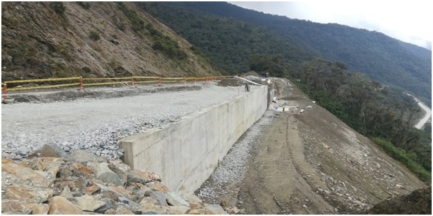Construcción de muro en el kilómetro 29, con el cual se recupera ancho de vía.
