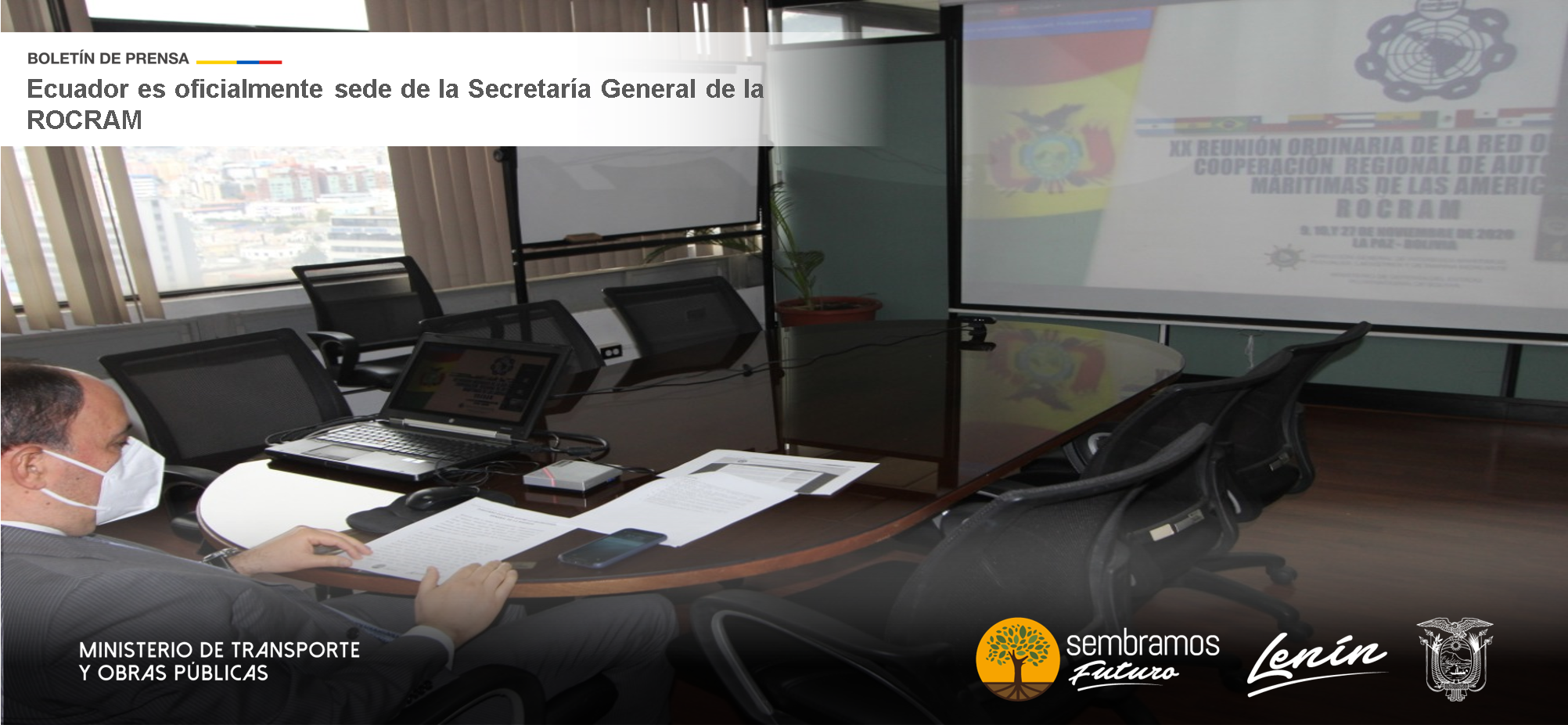 Este viernes 27 de noviembre de 2020, el Ministerio de Transporte y Obras Públicas (MTOP), a través de la Subsecretaría de Puertos y Transporte Marítimo y Fluvial (SPTMF), recibió la sede de la Secretaría General de la Red Operativa de Cooperación Regional de Autoridades Marítimas de las Américas (ROCRAM).