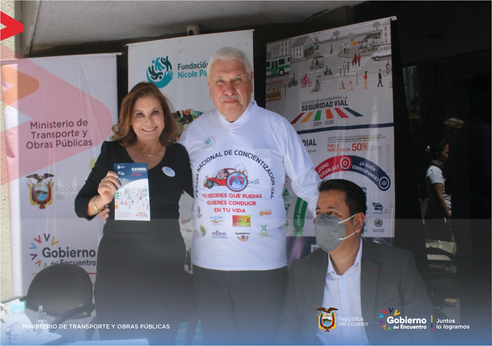 Marcelo Cabrera, ministro de Transporte y Obras Públicas y Soraya Herrera, presidenta de Fundación Cavat, realizaron el lanzamiento del “Nuevo Decenio de Acción para la Seguridad Vial 2021 – 2030 y la entrega del Plan Mundial de Acción”, programado por la Alianza Global de ONG´s por la Seguridad Vial de Naciones Unidas y la Organización Mundial de la Salud (OMS) de manera simultánea en todos los países miembros.