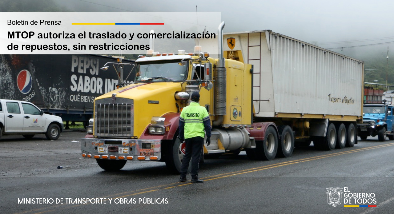 El Ministerio de Transporte y Obras Públicas mediante Acuerdo Nro. 015-2020 y, de conformidad con lo establecido en el Artículo 3 de la Resolución del COE Nacional del 02 de abril de 2020, con el objetivo de conservar el buen estado de los vehículos de carga que abastecen de productos de primera necesidad a todo el país, autoriza la prestación del servicio de mantenimiento y reparación de vehículos y sus partes, a escala nacional.