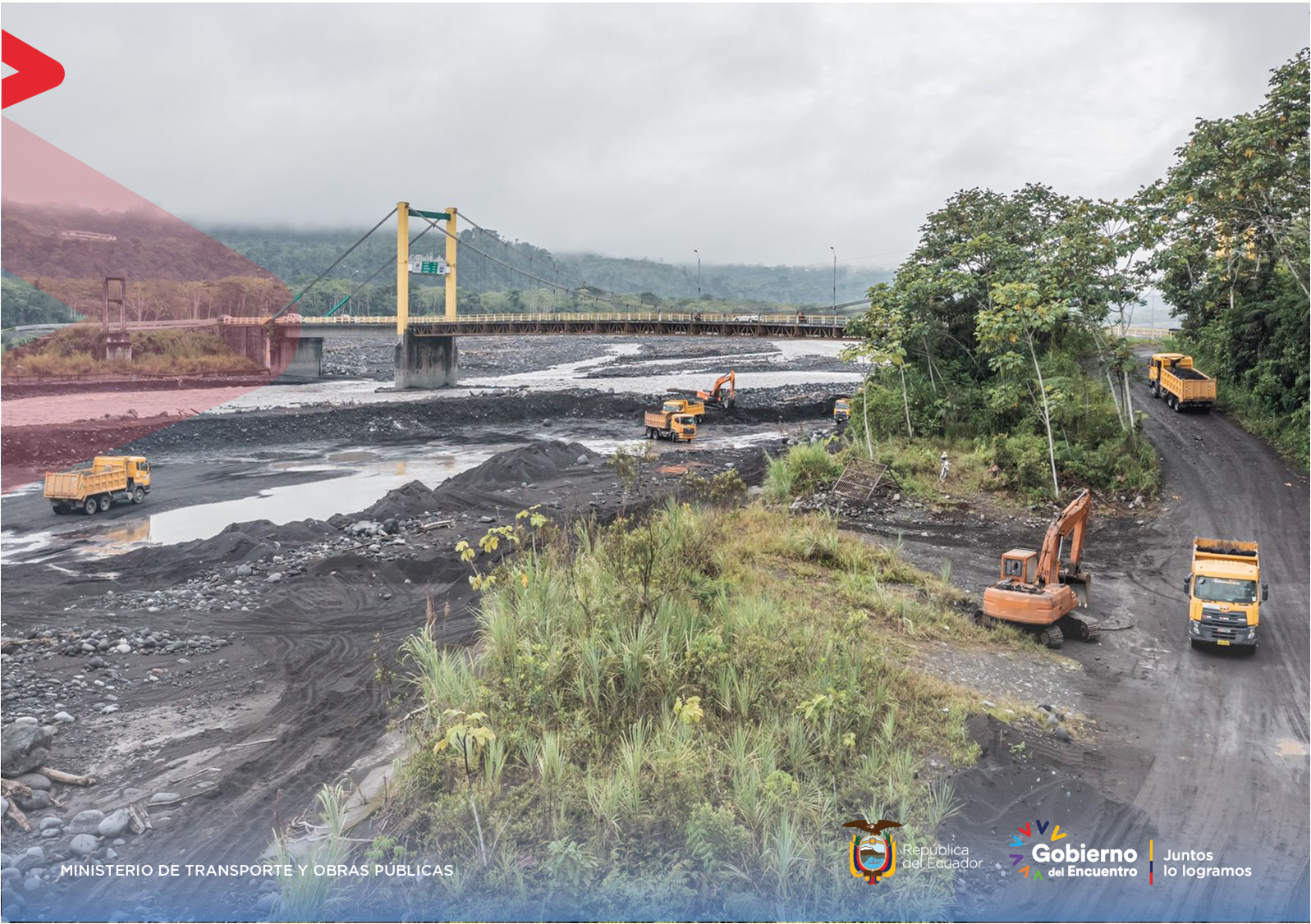 El Gobierno del Encuentro trabaja para reactivar la economía y consecuentemente mejorar las condiciones de vida de la población, al devolverle la conectividad y al darle soluciones inmediatas a las afectaciones por el fuerte temporal invernal y otras emergencias naturales que ha sufrido la Red Vial Estatal y el sector del puente sobre el río Upano, en la provincia de Morona Santiago.