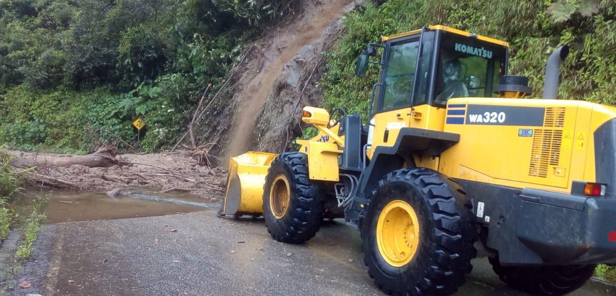 El Ministerio de Transporte y Obras Públicas atiende deslizamientos de tierra registrados en la vía Lumbaqui – La Bonita – Santa Barbara
