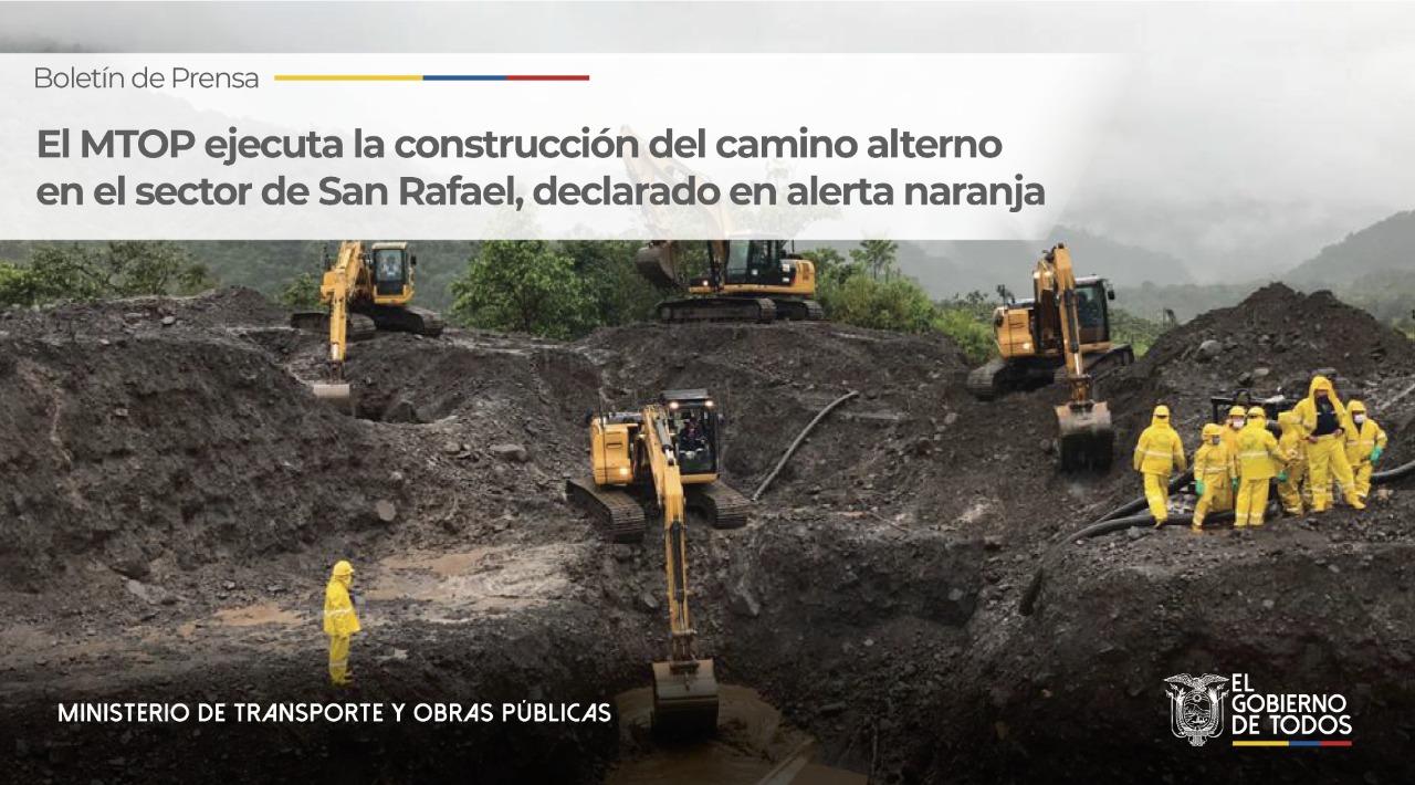 El MTOP ejecuta la construcción de un camino alterno en el sector de San Rafael, declarado en alerta naranja