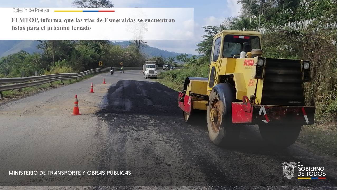 El MTOP informa que las vías de Esmeraldas se encuentran listas para el próximo feriado