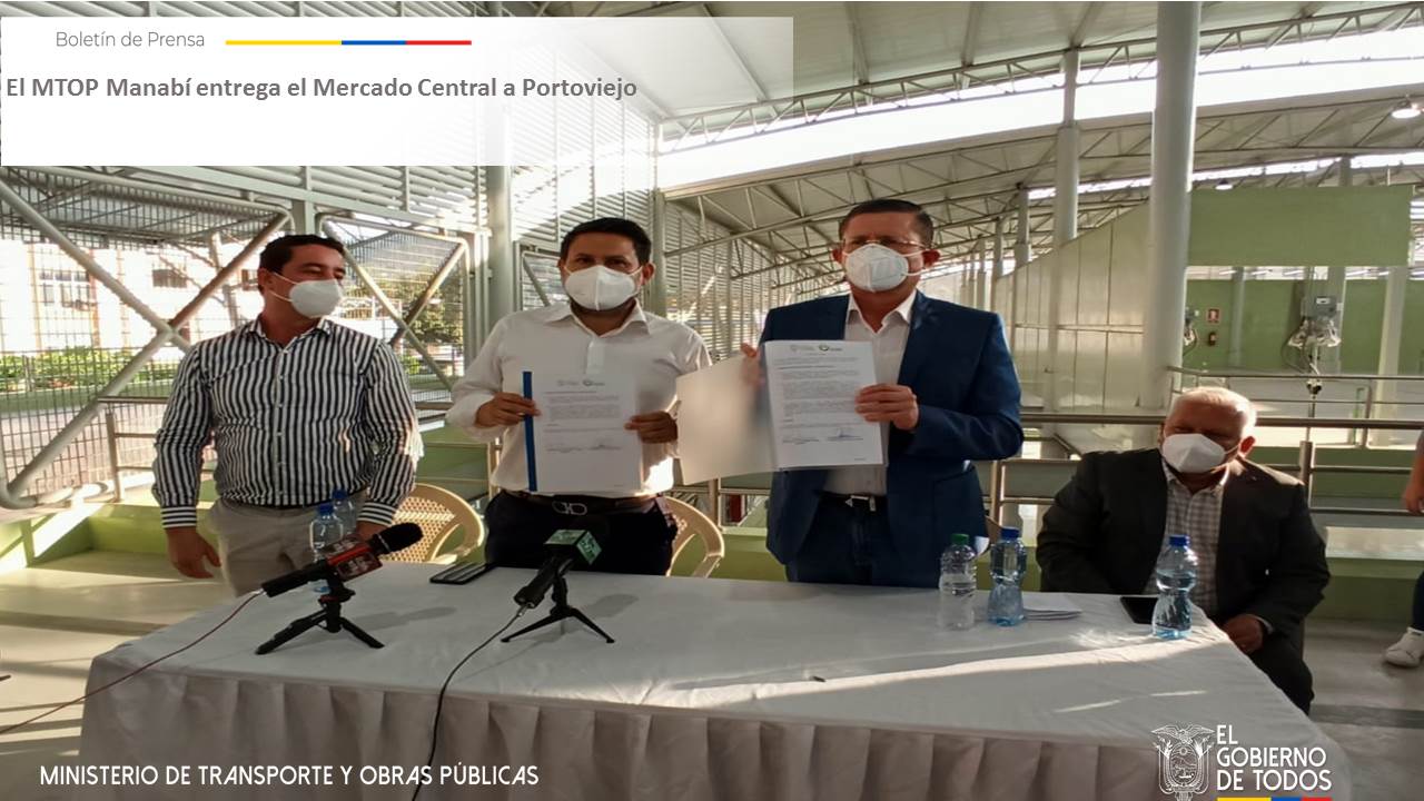 El Ministerio de Transporte y Obras Públicas (MTOP) suscribió dos actas con el Gobierno Autónomo Descentralizado de Portoviejo; la primera fue la no ocupación del Mercado Central del cantón y la segunda el uso de las aceras y bordillos colindantes a la zona urbana.