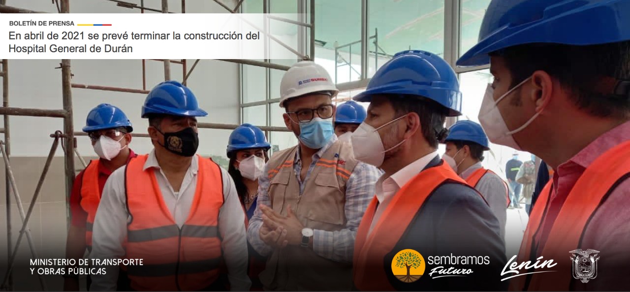 El Hospital de Durán, que se prevé estará listo en abril de 2021, contará con más altos estándares de calidad y moderno equipamiento. “Vamos a coordinar con el Ministerio de Salud Pública para que la operación de esta casa de salud se considere en el presupuesto 2021”, acotó Martínez.