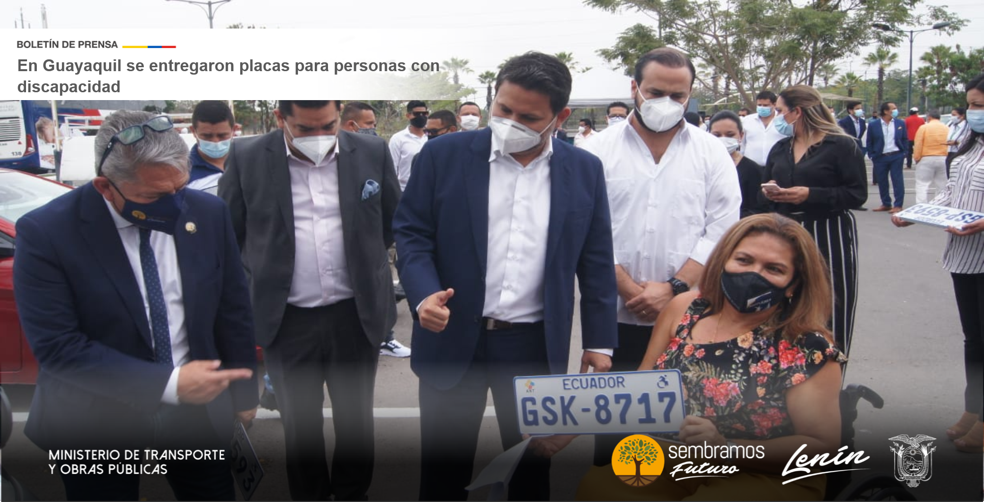 El ministro de Transporte y Obras Públicas, Gabriel Martínez entregó la tarde de este jueves 19 de noviembre de 2020, placas diferenciadas para uso exclusivo y traslado de personas con discapacidad como parte de una primera fase de este proyecto de alcance nacional.