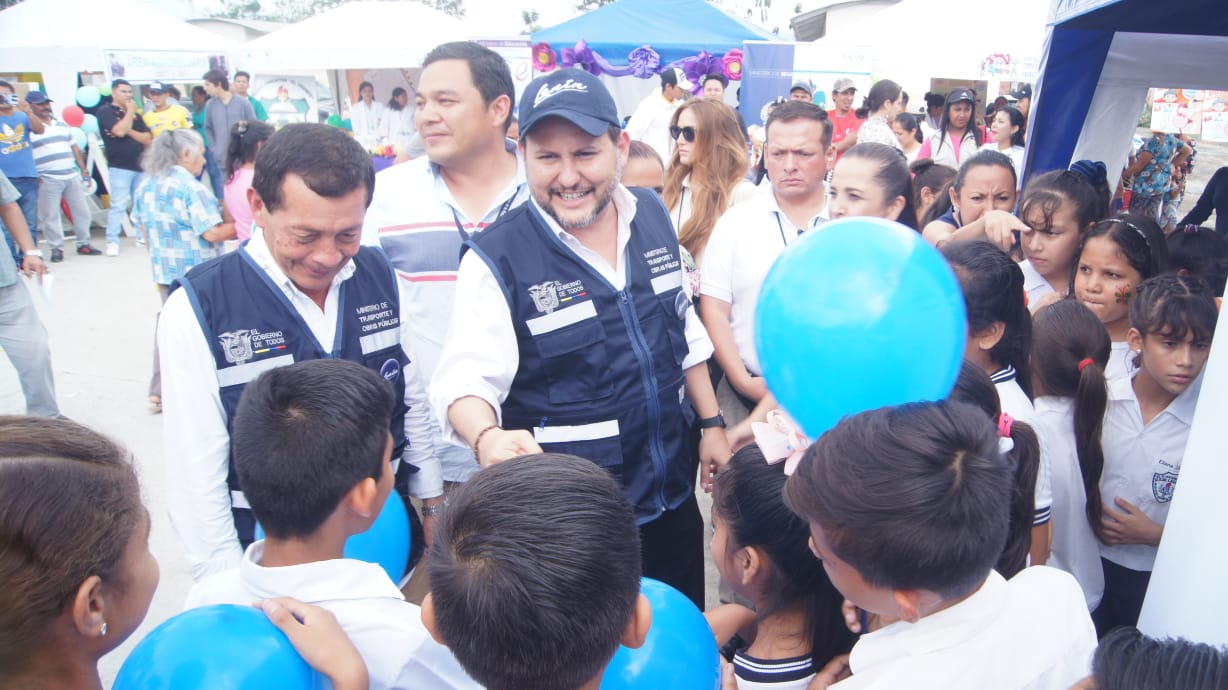 Adicionalmente junto a los estudiantes de las unidades educativas Camilo Gallegos, Alejo Lascano y El Triunfo, el Ministro fue parte de las charlas sobre seguridad vial; allí destacó la importancia del aprendizaje lúdico para sembrar las bases y reducir la accidentabilidad.