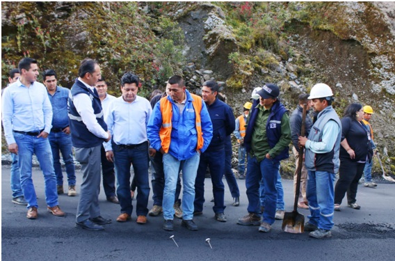 El titular de esta cartera de Estado, recorrió los 60 kilómetros del proyecto y constató que el avance de la obra supera el 60 por ciento; además inspeccionó el frente de trabajo en el kilómetro 30, donde se coloca la segunda capa de asfalto.