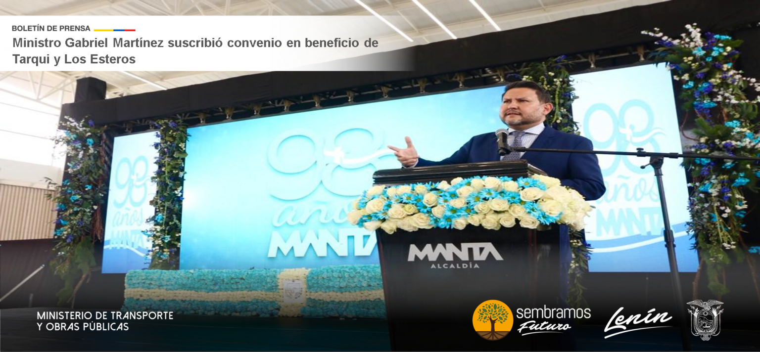 En sesión solemne de Manta, ministro Gabriel Martínez suscribió convenio en beneficio de Tarqui y Los Esteros