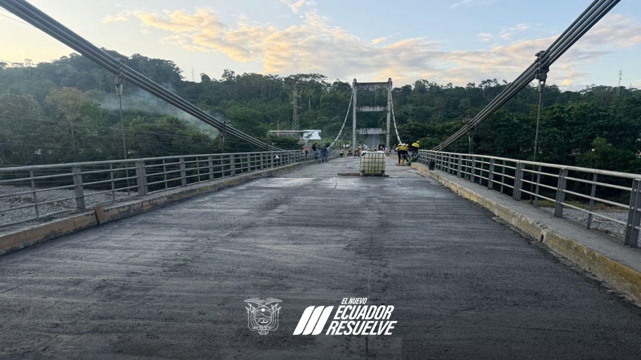 Napo. – El Ministerio de Transporte y Obras Públicas (MTOP) en coordinación con Gobernación, gobiernos locales y varias entidades privadas de la provincia, finalizó los trabajos de fundición de la capa de rodadura del puente colgante Puerto Napo de dos carriles, ubicado en el kilómetro 10 de la vía Tena – Puyo.