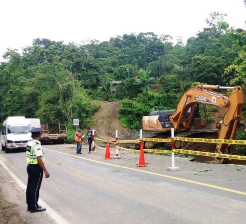 El MTOP actuó de manera inmediata y ejecuta trabajos de limpieza, adecuación para la instalación de la tubería afectada de 10m y señalización preventiva. Asimismo se están realizando labores de reconformación de la vía con material de relleno.
