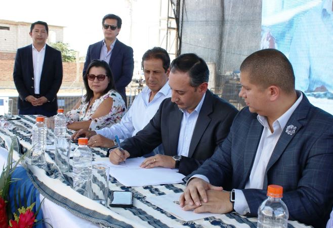 El ministro subrogante de Transporte y Obras Públicas, Boris Palacios, en la adjudicación del contrato, junto al gobernador de Santa Elena, David Sabando; gobernador del Guayas, Francisco Cevallos; viceprefecta del Guayas, Mónica Becerra.