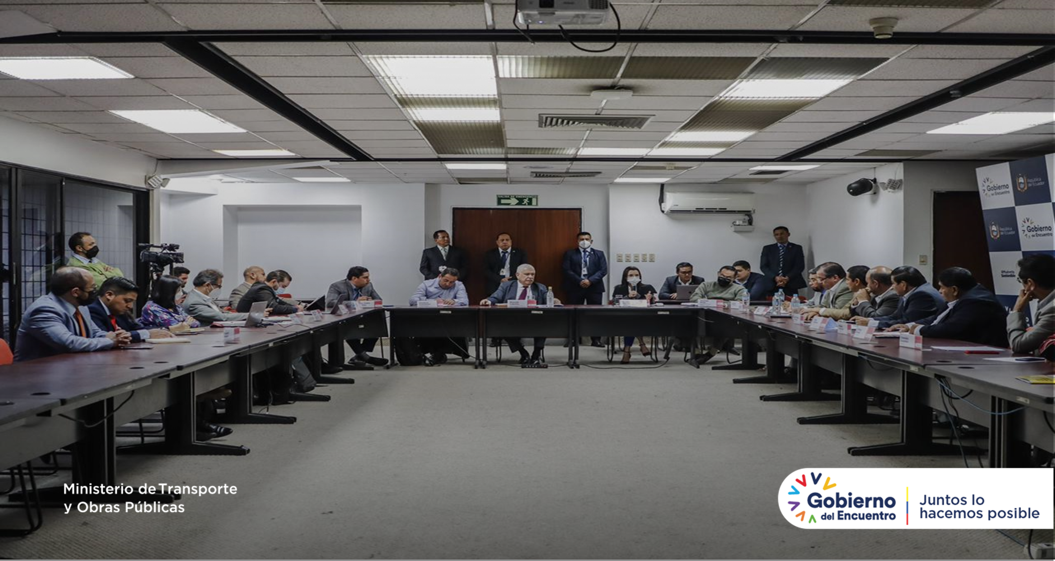 El Gobierno Nacional mantiene un dialogo constante con este sector importante para el país; la sesión estuvo presidida por el Ministro, Marcelo Cabrera, acompañado por los Viceministros, Homero Castanier, (Gobernabilidad), Sandra Molina (Interior), Daniel Cárdenas, subdirector de la Agencia Nacional de Tránsito (ANT), entre otras autoridades que forman parte de la mesa técnica.