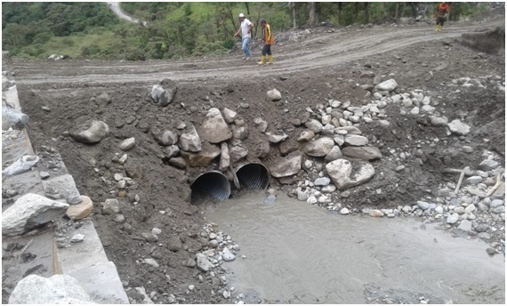 Tras el reporte de la emergencia, el equipo técnico y operativo del Ministerio de Transporte y Obras Públicas (MTOP) y la Corporación Eléctrica del Ecuador (CELEC EP) determinaron la construcción de la pasarela con el uso de dos ármicos (tubos de alcantarilla) y material de relleno. La circulación en este punto es de un carril.
