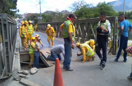 Entre los trabajos, se realizó el cambio de placas de la estructura metálica del puente Bailey, con personal técnico del Ministerio de Transportes y Obras Públicas, para habilitar el puente que facilita la conectividad de los usuarios, que visitan los atractivos de Loja y Zamora Chinchipe.