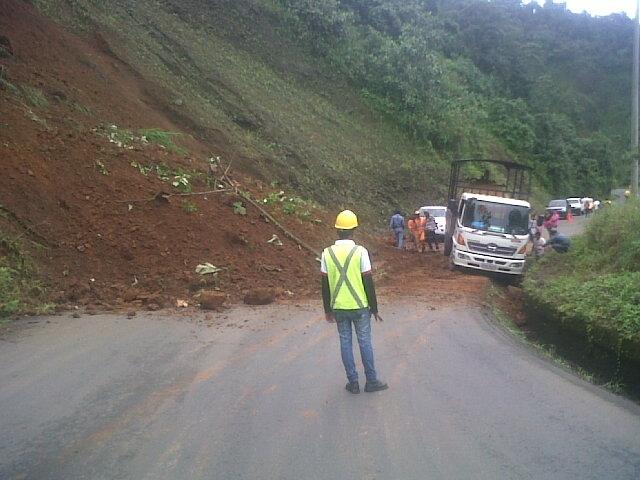 El Ministerio de Transporte y Obras Públicas informa que está cerrada la circulación vehicular en la carretera Huigra – El Piedrero, a causa de un fuerte deslizamiento de tierra de aproximadamente 2500 m3 producido en el Km. 10+180. Maquinaria y personal de la Dirección provincial de Chimborazo realiza la limpieza del material existente en la calzada, así lo informó el Ing. Néstor Solís, director del MTOP Chimborazo.