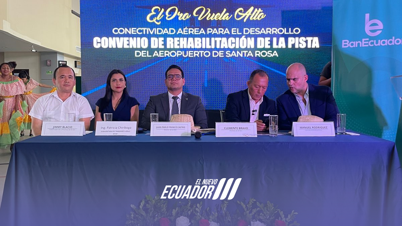 El Oro. – El Aeropuerto Regional de Santa Rosa se prepara para una importante modernización. El Gobierno Nacional a través de la Dirección General de Aviación Civil (DGAC) suscribió con la Prefectura de El Oro un convenio clave para la rehabilitación de su pista, una obra que busca fortalecer la conectividad y beneficiará a más de 500,000 usuarios en el sur del país.