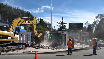 Maquinaria de la concesionaria Panavial, a cargo del proyecto de ampliación del tramo Rumichaca – Ibarra, intervino en el derrocamiento de las edificaciones del lado ecuatoriano, en cumplimiento al contrato firmado con el Ministerio de Transporte y Obras Públicas de Ecuador.