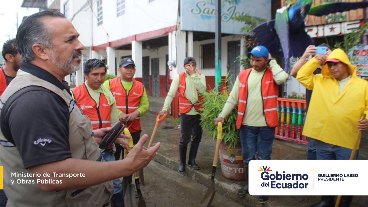 Manabí. Continuamos nuestro trabajo de limpieza y desalojo de material por efecto de las lluvias en Manabí. Darío Herrera, ministro de Transporte y Obras Públicas (MTOP), visitó el cantón Chone y recorrió varios sectores afectados por las inundaciones.
