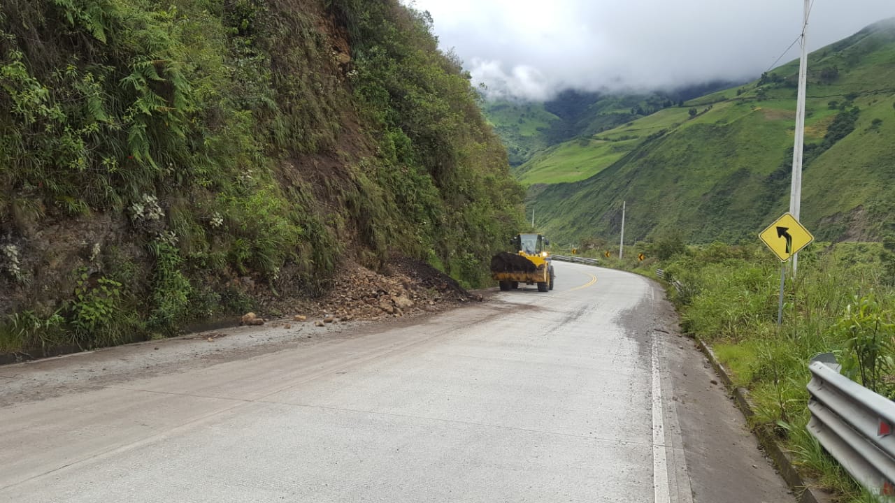 Hace 15 días, un macrodeslizamiento afectó el Km 86 de la vía Cuenca – Girón – Pasaje (Azuay), la cual está en permanente mantenimiento debido a los constantes deslizamientos de tierra por el invierno. La carretera está habilitada en un carril y se recomienda circular con precaución.